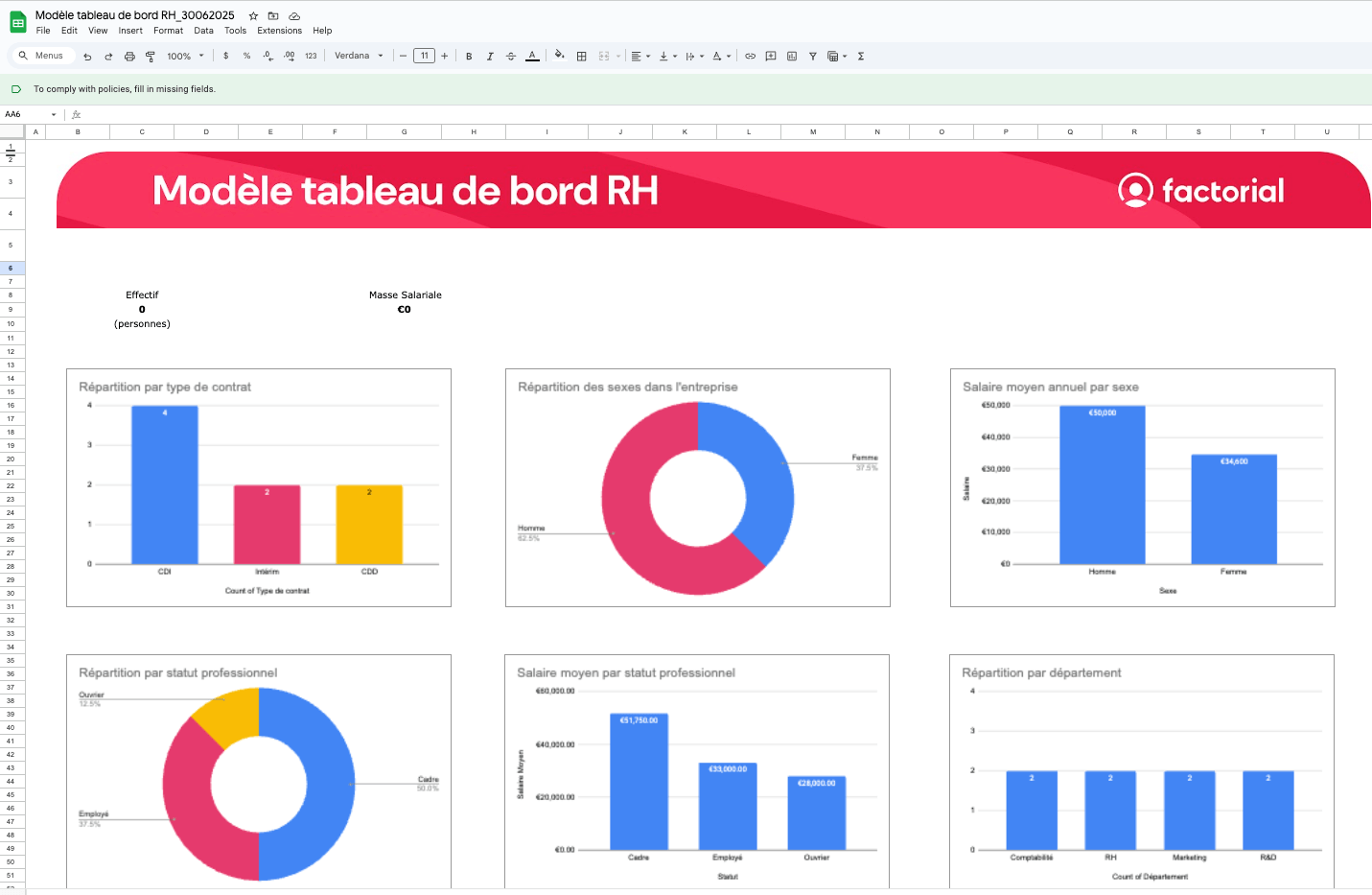 Voici un exemple de tableau de bord RH prêt à l’emploi pour suivre vos indicateurs de performance RH incontournables.